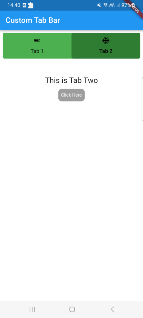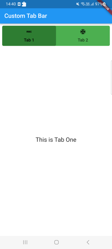 In this code, we’ve created a basic MyApp widget that sets up the Flutter app’s structure. The MainCustomTab widget is set as the home screen.